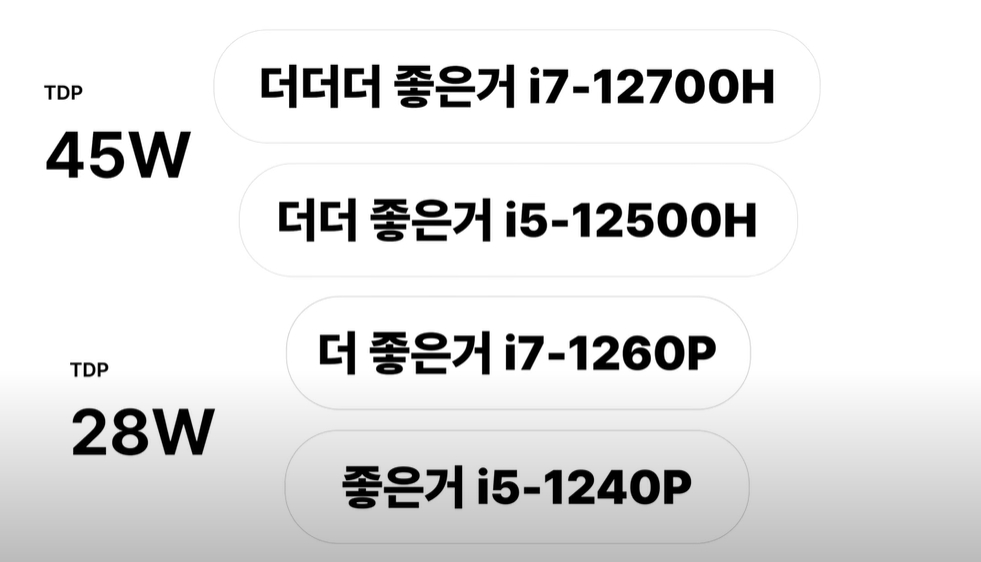 ์ธํ ๊ธฐ์ค์ผ๋ก i7-1260P , i5-1240P ์ด๋ฐ ๋ฅ์ธ๋ฐ..