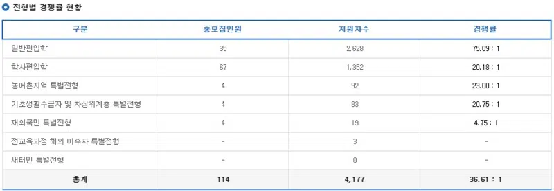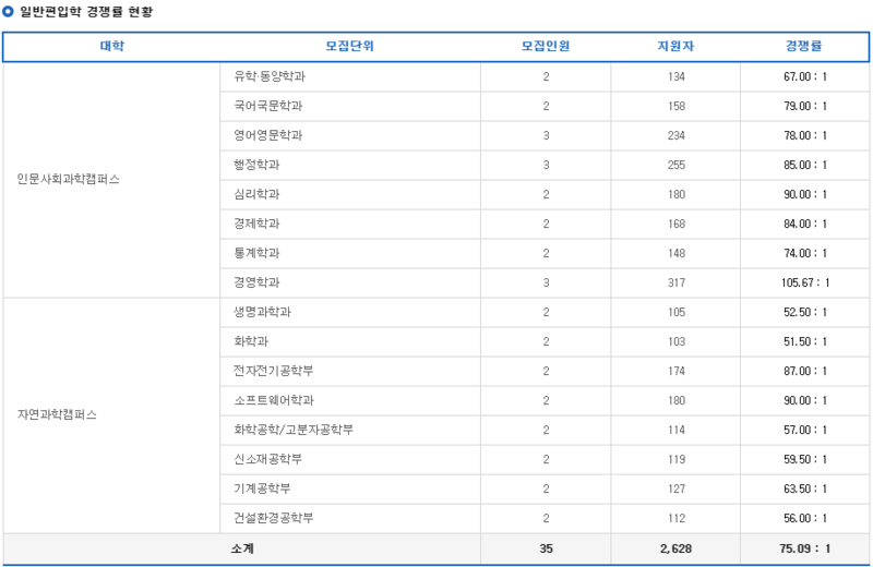 23ํ๋ ๋์๋ ์ผ๋ฐํธ์ 246๋ช ๋ชจ์งํด์ 16.55:1, ํ์ฌํธ์ ์ 67๋ช ๋ชจ์งํด์ 15.42:1์ ๊ธฐ๋กํ๊ณ ์์ต๋๋ค.